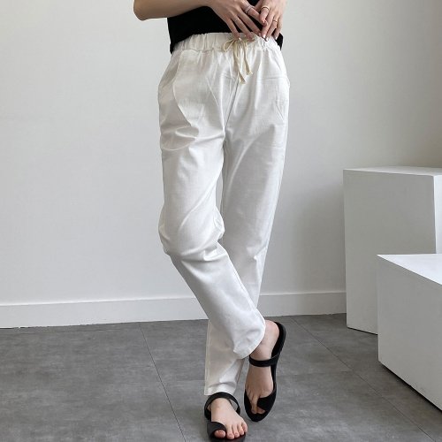 [모노무드]모노무드 p68 여성 린넨 바지 여름 여자 마 8부 스판 배기 팬츠