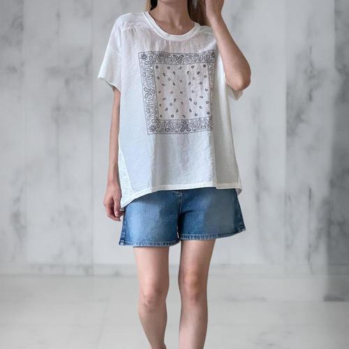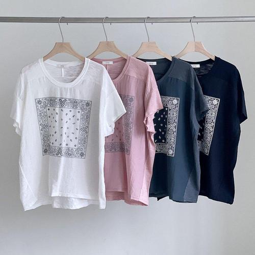 여성 반소매 반다나 SS 마원단 비침 티셔츠