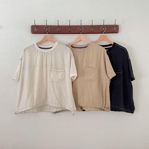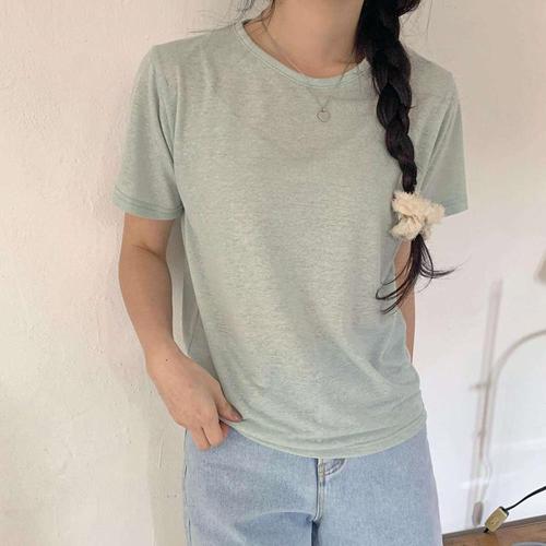 [1+1] 여성 U넥 반소매 마원단 무지컬러 티셔츠