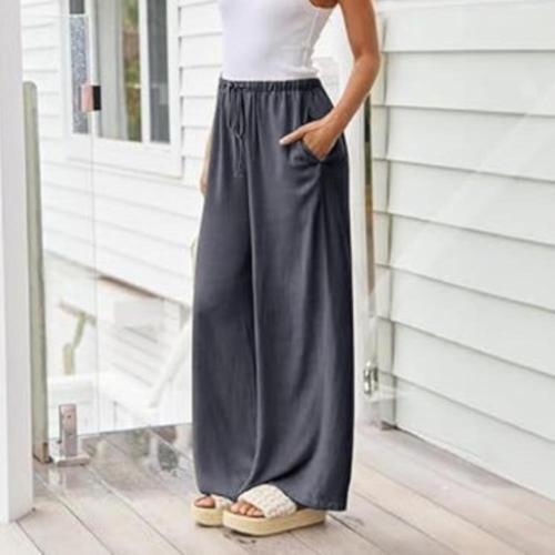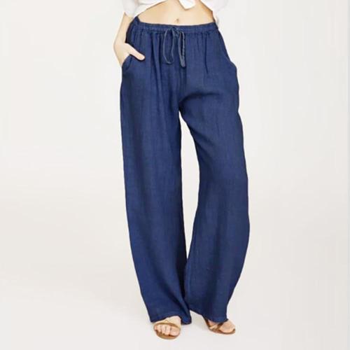 여성 면원단 민무늬 넓은 색상 마원단 팬츠