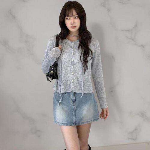 [다잇템]여성 편한 카라없는 탱크 마원단 단추 가디건