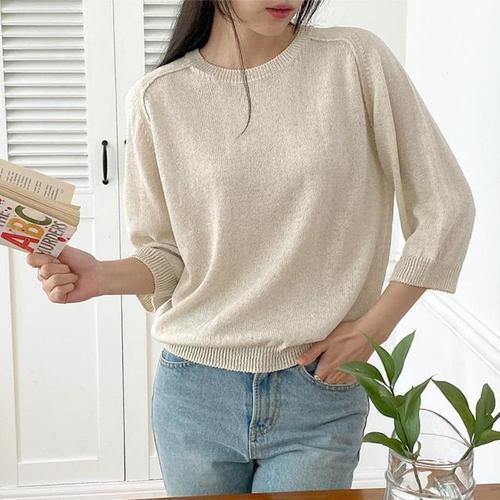 [다잇템]여자 마원단 SS 라운드 빅사이즈 칠부반팔 니트 (16005132A)