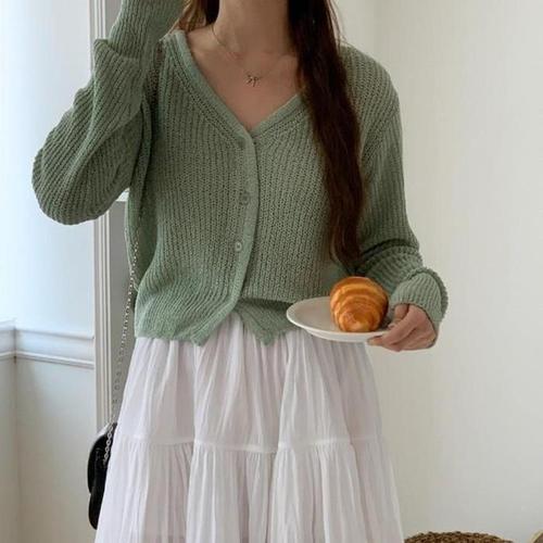 [다잇템]여자 SS 탱크 스웨터 롱슬리브 V넥 망사 가디건 (10399254B)