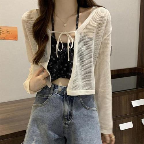 [다잇템]여자 스카시 SS 비침 망사 면원단 가디건 (16004778A)