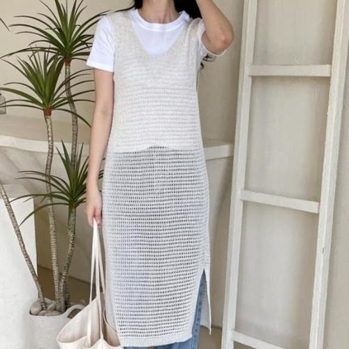 [셀러허브_여성트랜드패션]ONM 트임 폴리 데일리 기본 편안한 나시 망사 여름 니트