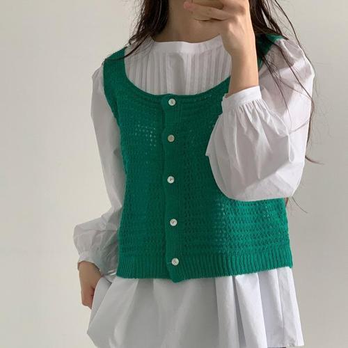 [다잇템]여자 단추 리버시블 코디용 망사 펀칭 니트조끼 (15076427A)