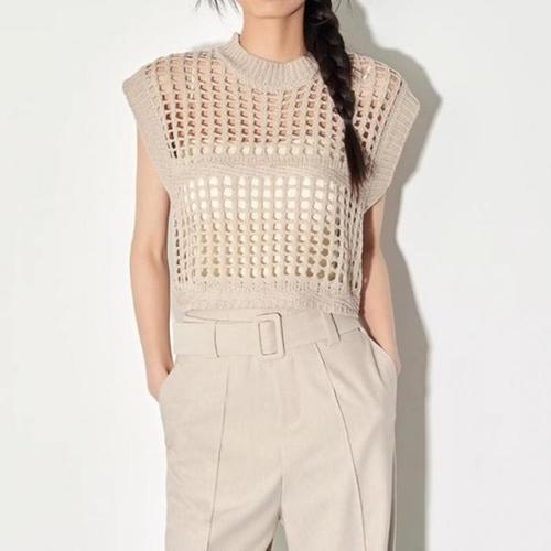 [다잇템]여자 망사 베스트 그런지 슬리브리스 위빙 니트 (15922980A)