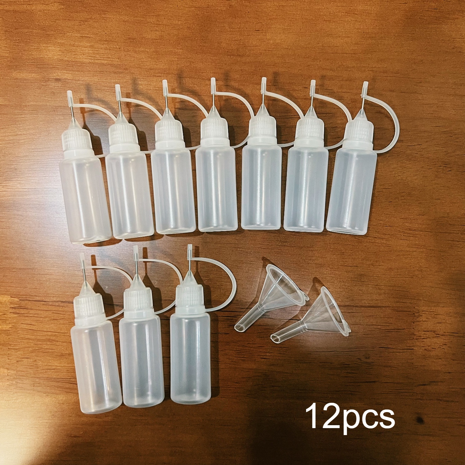 TEMU 12개 정밀 바늘 팁 글루 어플리케이터 병 세트 (미니 깔때기 포함/투명), 15ml/0.51oz 접착제 스퀴즈 디스펜서 – 네일 폴리쉬 리무버, 잉크 패드 리필러, 타투 액체 용기, 에센셜 오일 드로퍼, 스포팅 액체 및 윤활제, 페인트 및 아크릴 아트 용품 – DIY 공예, 페인팅 프로젝트에 이상적|매니큐어|네일팁|아크릴물감