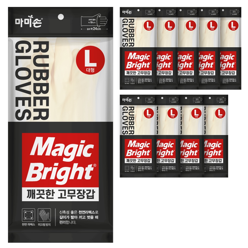 매직브라이트 X 마미손 식품용 라텍스 단목 고무장갑 10켤레 대형(L)
