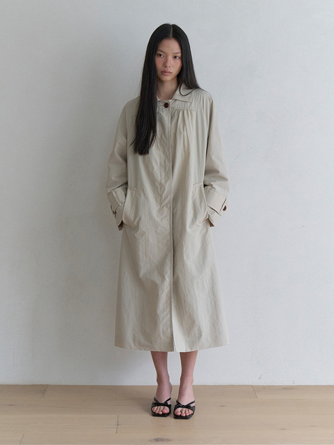 [아미디] 셔링 디테일 맥시 트렌치 코트_라이트 카키
