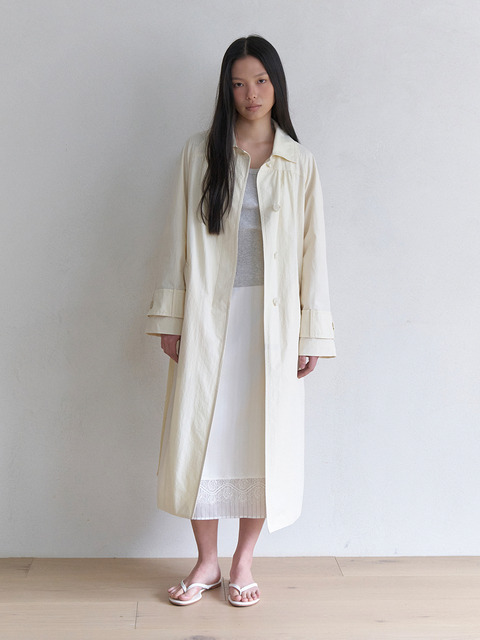 [아미디] 셔링 디테일 맥시 트렌치 코트_라이트 옐로우