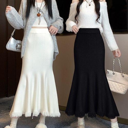[오너클랜]인기상품 머메이드 롱 니트 스커트 여성용 가을 겨울 밑단 수술 치마 [WFLLQ5L_260305]