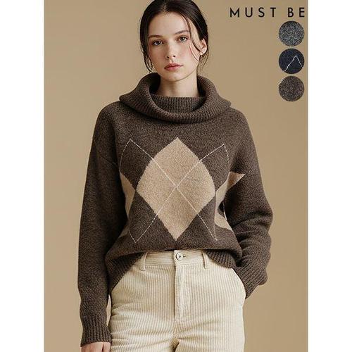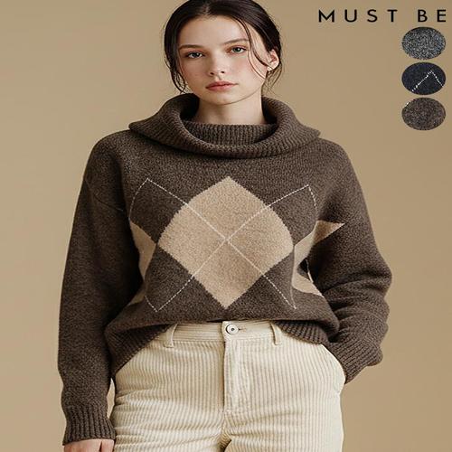 [머스트비]여성 프렌치 아가일 니트 가디건
