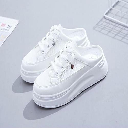 여성용 흰색 통기성 메쉬 운동화 끈풀림 방지 키높이
