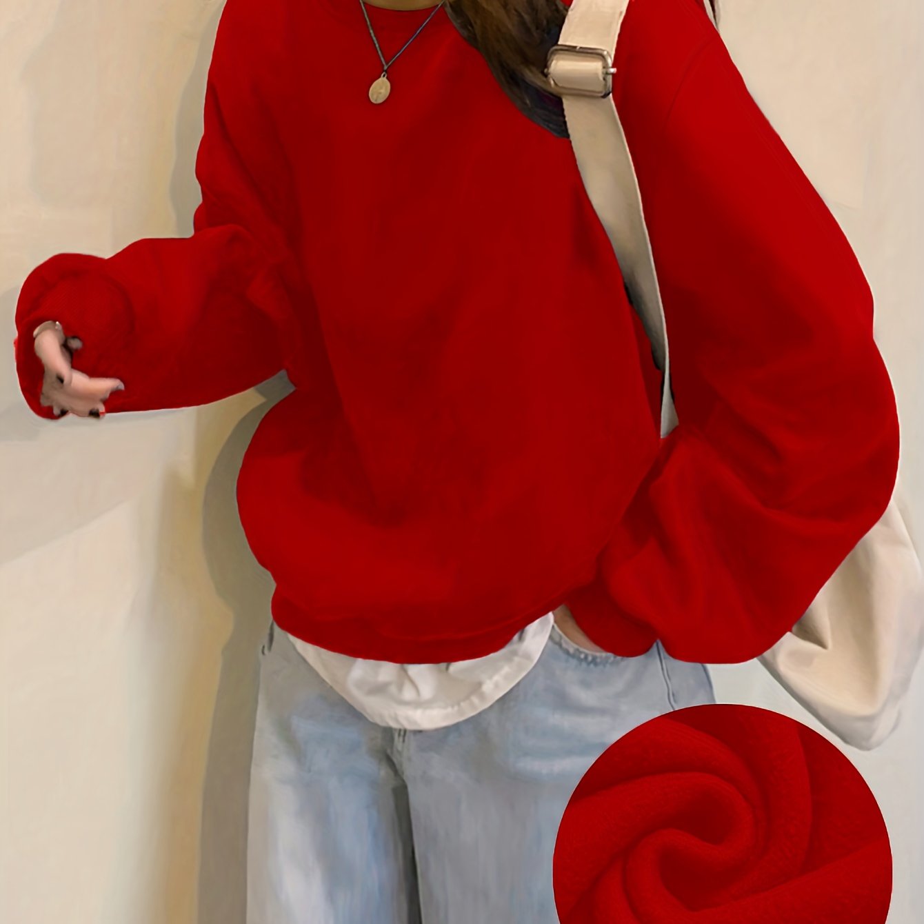 TEMU 여성용 오버사이즈 Y2K 솔리드 레드 스웨터 스웨트셔츠 - 오버사이즈 드롭 숄더 라운드넥 긴팔 풀오버, 캐주얼 겨울용 따뜻한 스웨터, 가을/겨울용 포근한 레이어링 아이템, 생기 넘치는 레드 (세탁기 사용 가능)