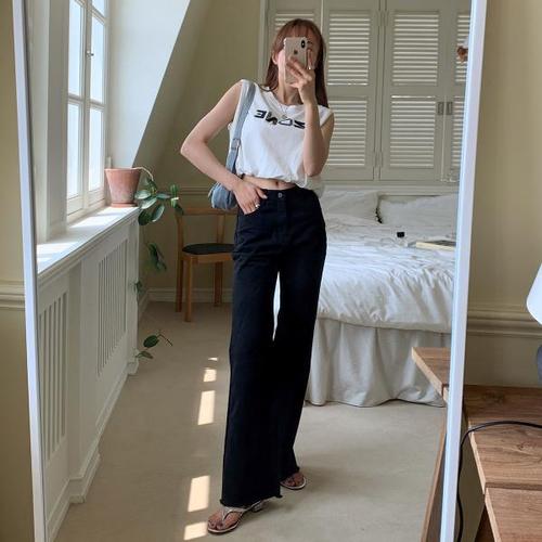 [리엘라]메베리 블랙 컷팅 부츠컷 팬츠