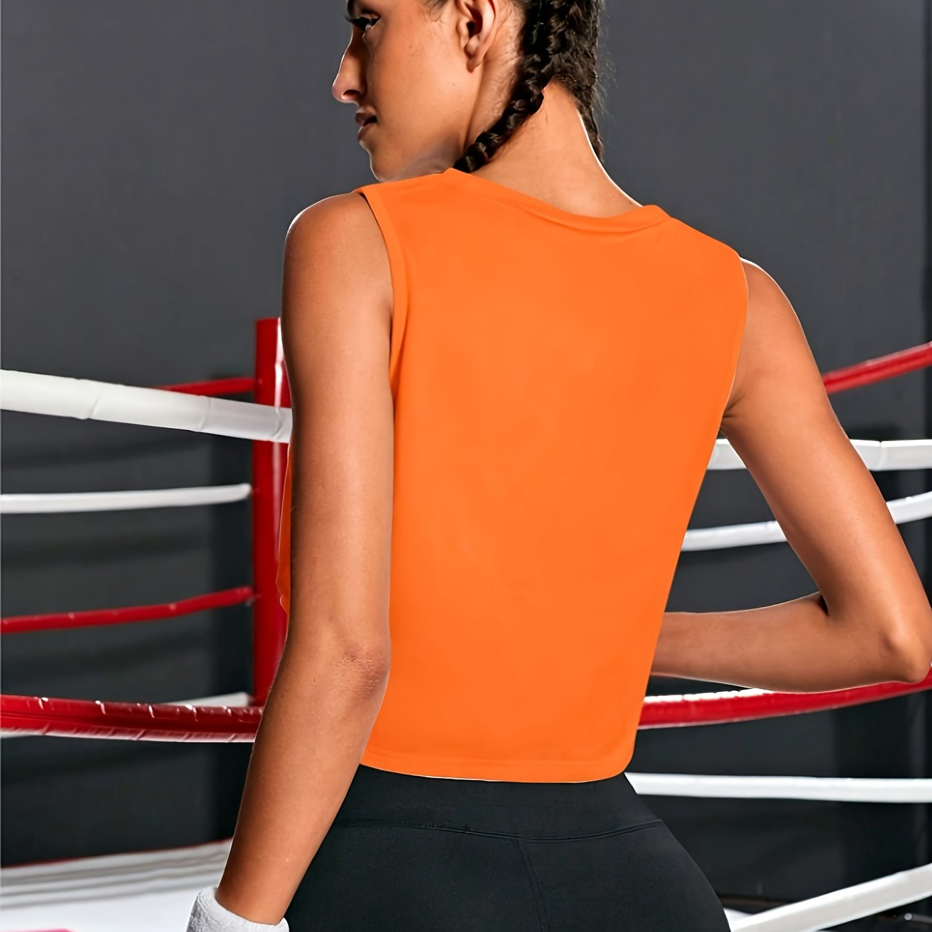 TEMU 여성용 여름 민소매 오렌지 솔리드 운동복 탑 - 통기성 좋은 루즈핏 라운드넥 백리스 티셔츠, 헬스, 요가, 캐주얼 웨어에 적합 - 세탁기 사용 가능한 애슬레틱 셔츠