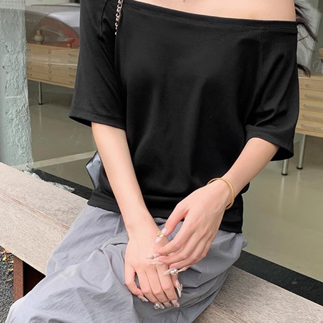 TEMU 여름 Y2K 캐주얼 패션 루즈핏 다용도 솔리드 컬러 원숄더 반팔 티셔츠 여성 오프숄더 탑