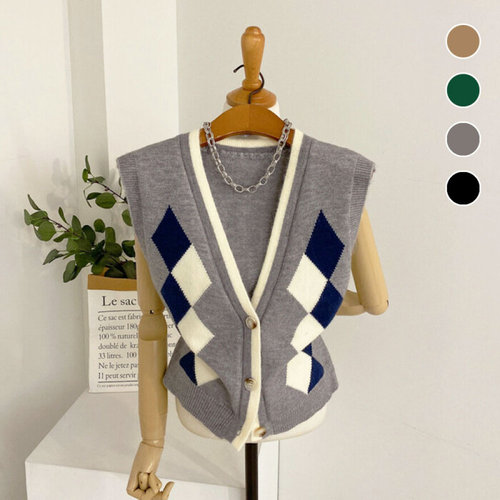 (이거찜)단추 니트 조끼 봄 가을 여성 레이어드 (WFH66GD)