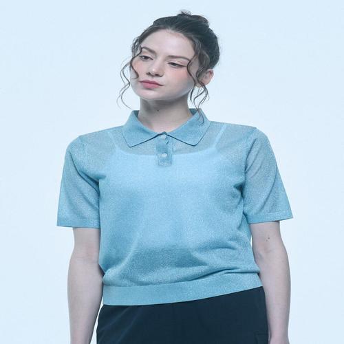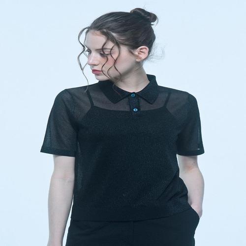 [엠그라프]글리터 메탈라인 시스루 울 카라 니트