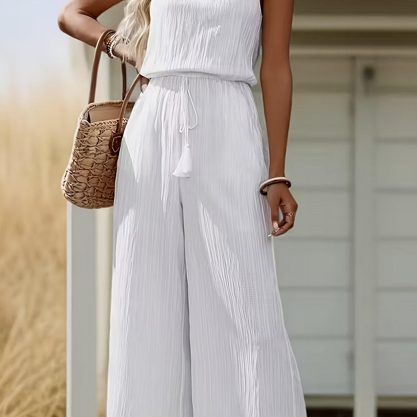 TEMU 여성용 우아한 오프숄더 민소매 와이드 레그 점프수트, 올 시즌 캐주얼부터 포멀 의상까지, 세탁기 사용 가능, 신축성 없는 원단 (여성용 다용도 의류)