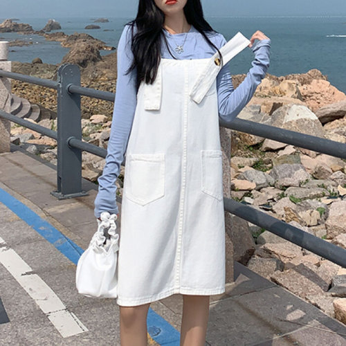 [에이치플러스몰]심플한 원피스 데님 멜빵 데님스커트