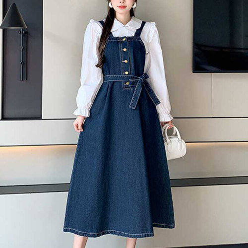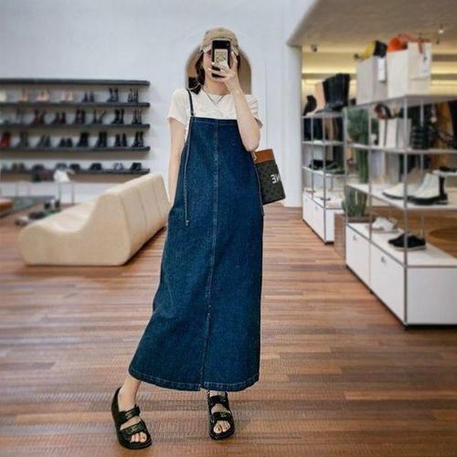 여자 봄 여름 가을 겨울 뷔스티에 멜빵 데님 롱원피스 핏이 예쁜 간절기 나들이룩