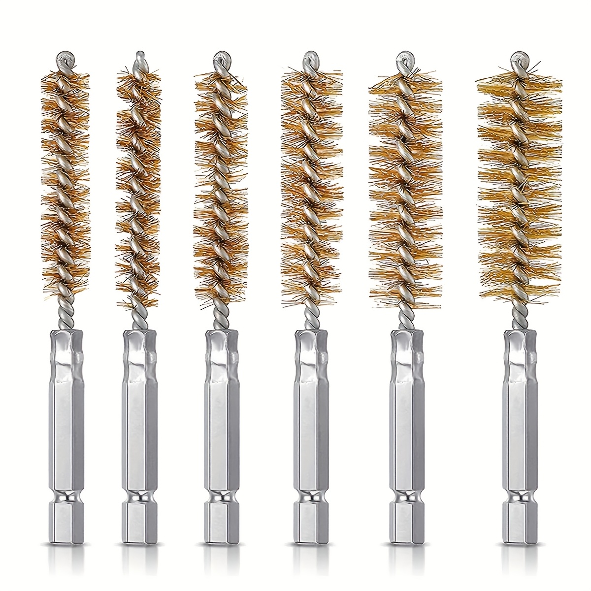 TEMU 6개 스테인레스 스틸 와이어 브러시 세트, 다중 스펙 와이어 구멍 브러시, 구리 튜브 면도기 스크루와 스레드 제거, 1/4인치 헥스 핸들 디자인, 먼지 제거, 구리 튜브 손상 없음
