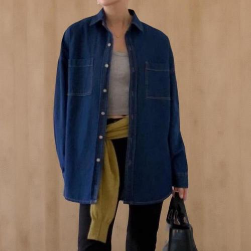 [신상오픈런]여자 키치무드 백라벨 포켓 코튼 루즈핏 청 남방