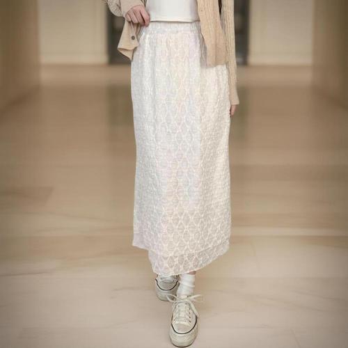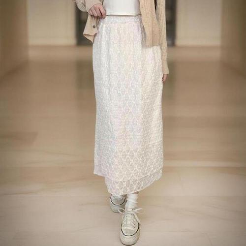 [신상오픈런]여성 면혼합 밴딩 플라워 레이스 중간 길이 롱스커트