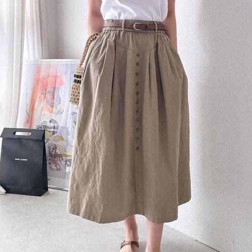 [다잇템]여자 코튼 에이라인 단추 고무줄 롱스커트 (19162900A)