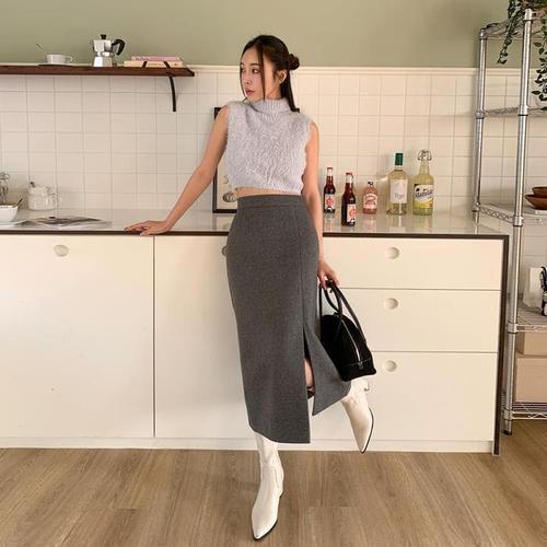 옆트임 롱 면 치마 일자 스커트 여자 활동성 H라인 vpP8+1tQe