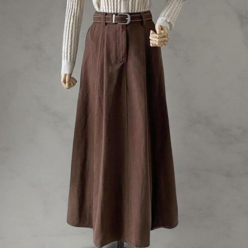 [옷자락] 여성 심플 코튼 혼합 라이오셀 벨트 A라인 롱 치마