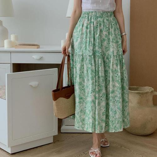 [다잇템]여자 면원단 나들이 티어드 꽃무늬 SS 롱스커트 (16097291A)