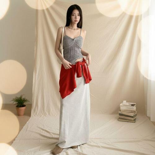 [옷자락]여성 봄여름 데일리 코튼 스트라이프 롱 스커트