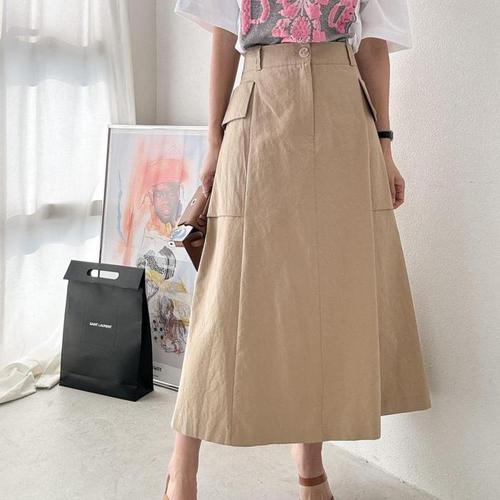 [다잇템]여자 면원단 큰주머니 슬릿 카고치마 롱스커트 (17903706A)