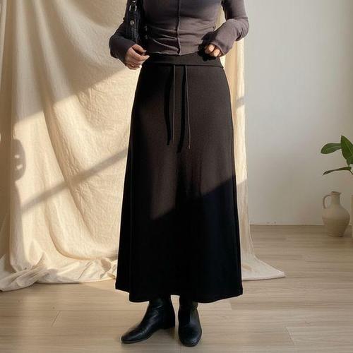 [다잇템]여성 면원단 넓은 슬림 마원단 롱스커트 (47374606)