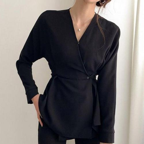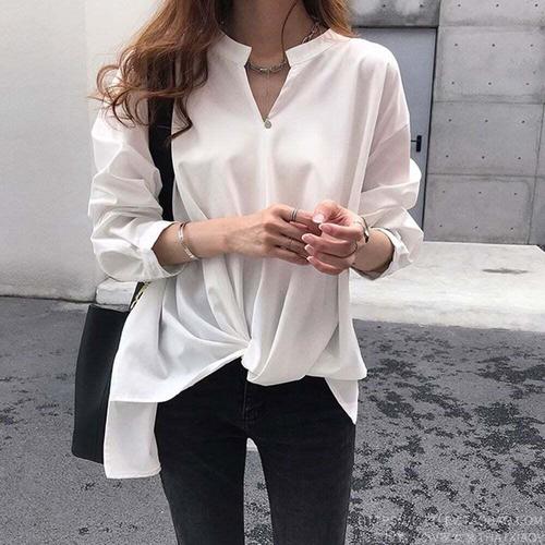[셀럽하우스]브이넥 HMOA1973 블라우스 데일리 기본 면접 클래식 정장 긴팔