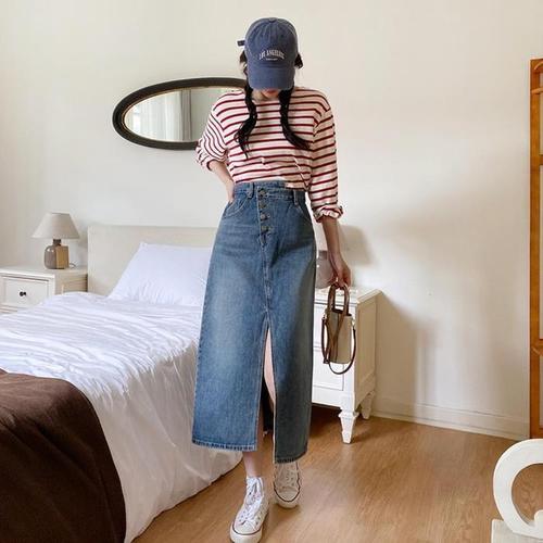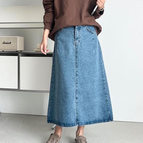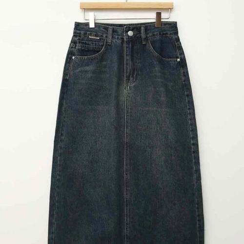 [시크릿라벨] 코튼앞트임뒷밴딩데님롱스커트