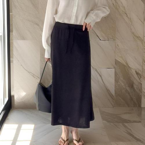 [다잇템]여자 민무늬 끈밴딩 휘뚜루 면스판 롱스커트 (32643259A)