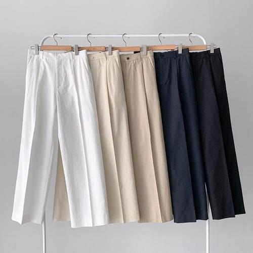 SS 심라인 앞절개 와이드 코튼 텐셀 슬랙스