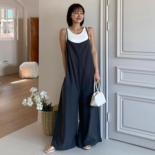 소프트 루즈핏 면 브이넥 와이드 포켓 체형보정 끈 나시 뷔스티에 점프슈트 점프수트