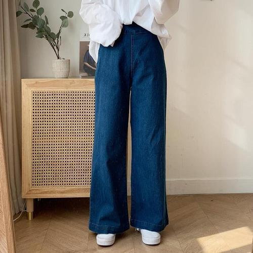 [다잇템]여성 넓은 진 롱 백밴딩 스냅버튼 면100 팬츠 (31776769A)