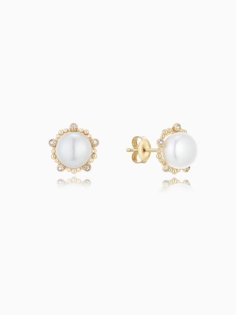 [CRICRI] 14K 골드 10mm 진주 귀걸이 스와로브스키 크리스탈 제작