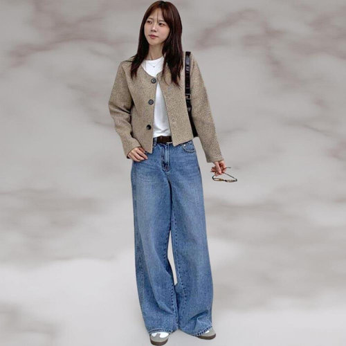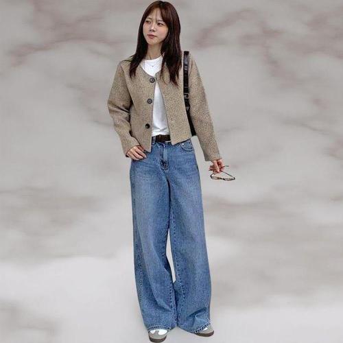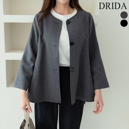 [옷자락] 여성 클래식 슬림핏 대단추 노카라 긴팔 재킷