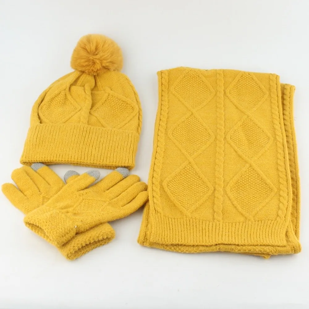 여성용 따뜻한 단색 스카프 모자 장갑 세트, 두꺼운 니트 소프트 니트 모직 세트, 가을 겨울 패션, 신상