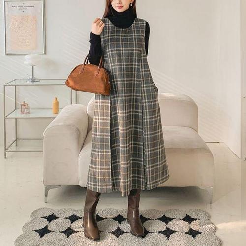 [에이치플러스몰]모직느낌 나시 캐주얼 슬림드레스 롱원피스 필수템 롱