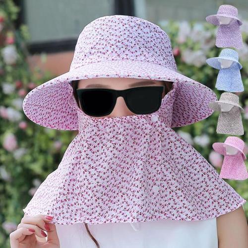bns 여성용 꽃무늬 햇빛가리개 마스크형 농사 가드닝 모자 WFLIPMA