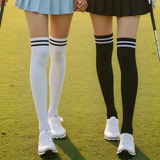 더간다 1+1 스포츠 여성니삭스 골프양말 중목 무릎 삭스 통기성 흡습성 사계절 오버니삭스, 롱 블랙+화이트 1SET