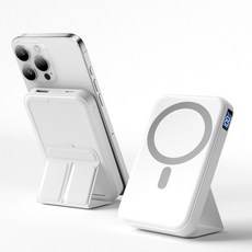 TRYSEEK 맥세이프 보조배터리 10000mAh 무선 보조배터리 고속충전 PD22.5W QC3.0 C타입 핸드폰거치대, 화이트, W15